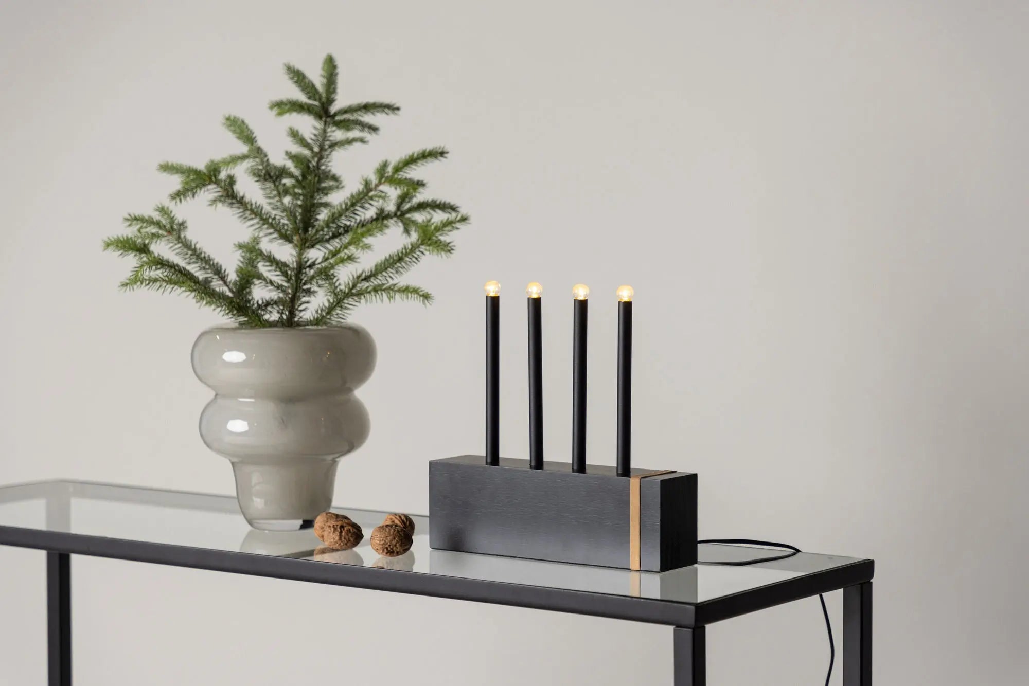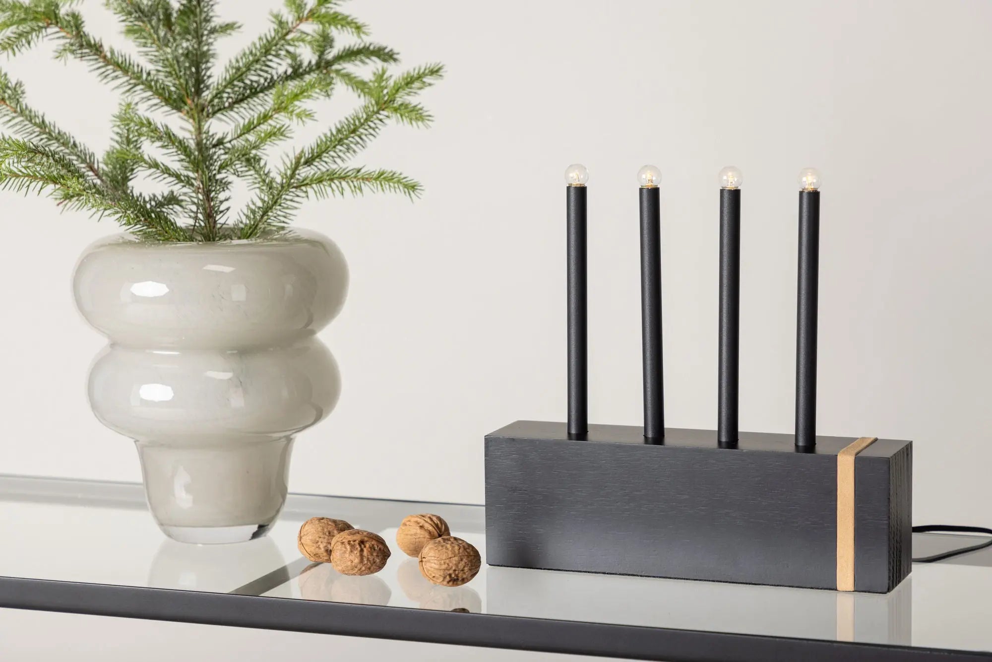 Parfait pour les soirées intimes ou les dîners en famille, il diffuse une lumière douce et apaisante. Sa base noire rectangulaire en fait un objet d'art pour votre intérieur, captivant le regard de chacun.