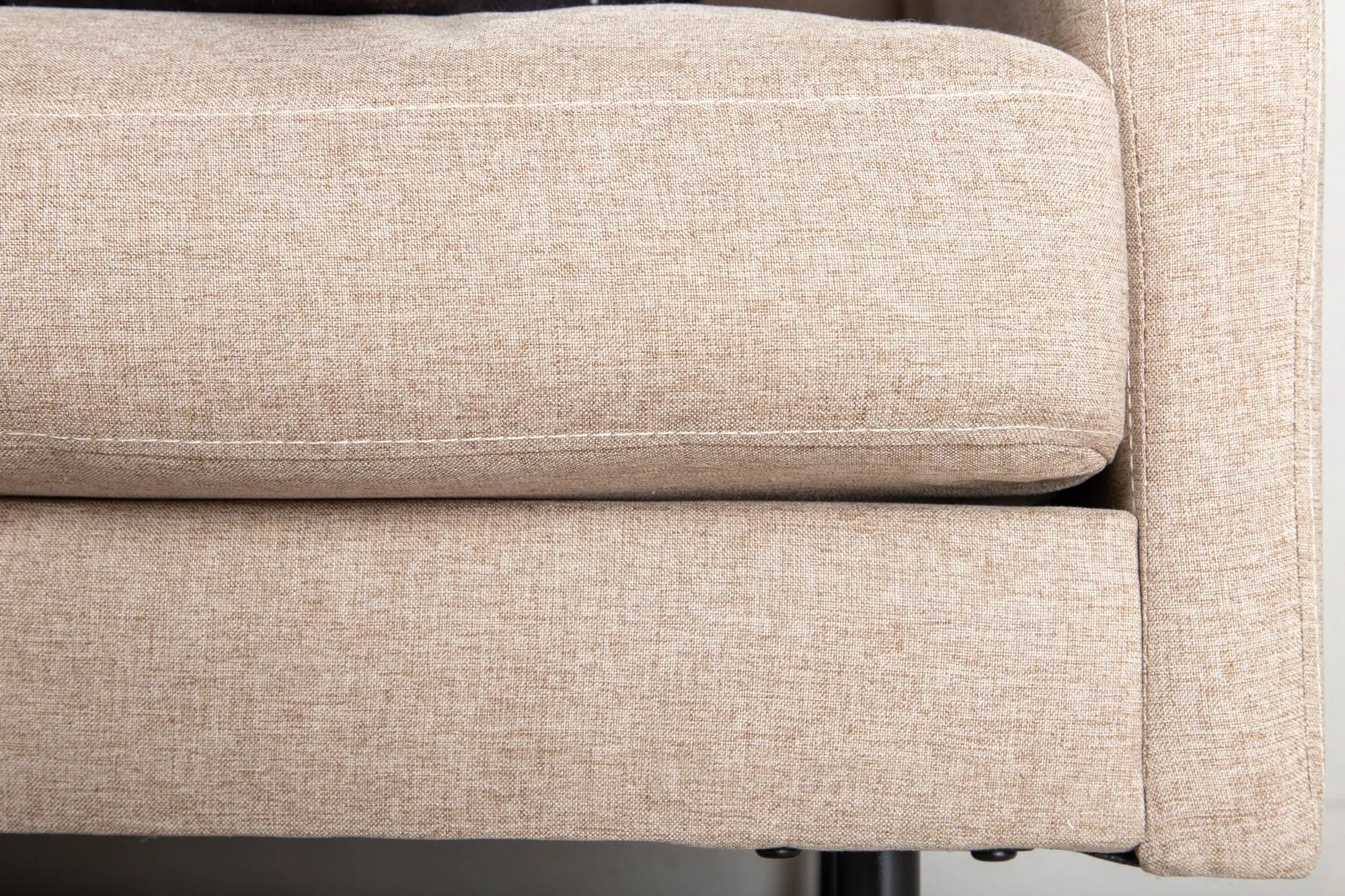 - Combinaison harmonieuse de tissu beige et pieds en métal noir