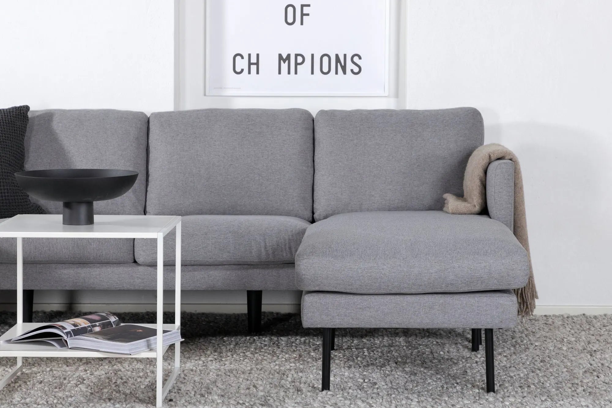 Ce sofa se distingue par sa teinte grise élégante et son tissu moelleux. Son esthétique nordique, avec des lignes épurées et des pieds fins en métal noir, apporte une touche de modernité à votre intérieur.