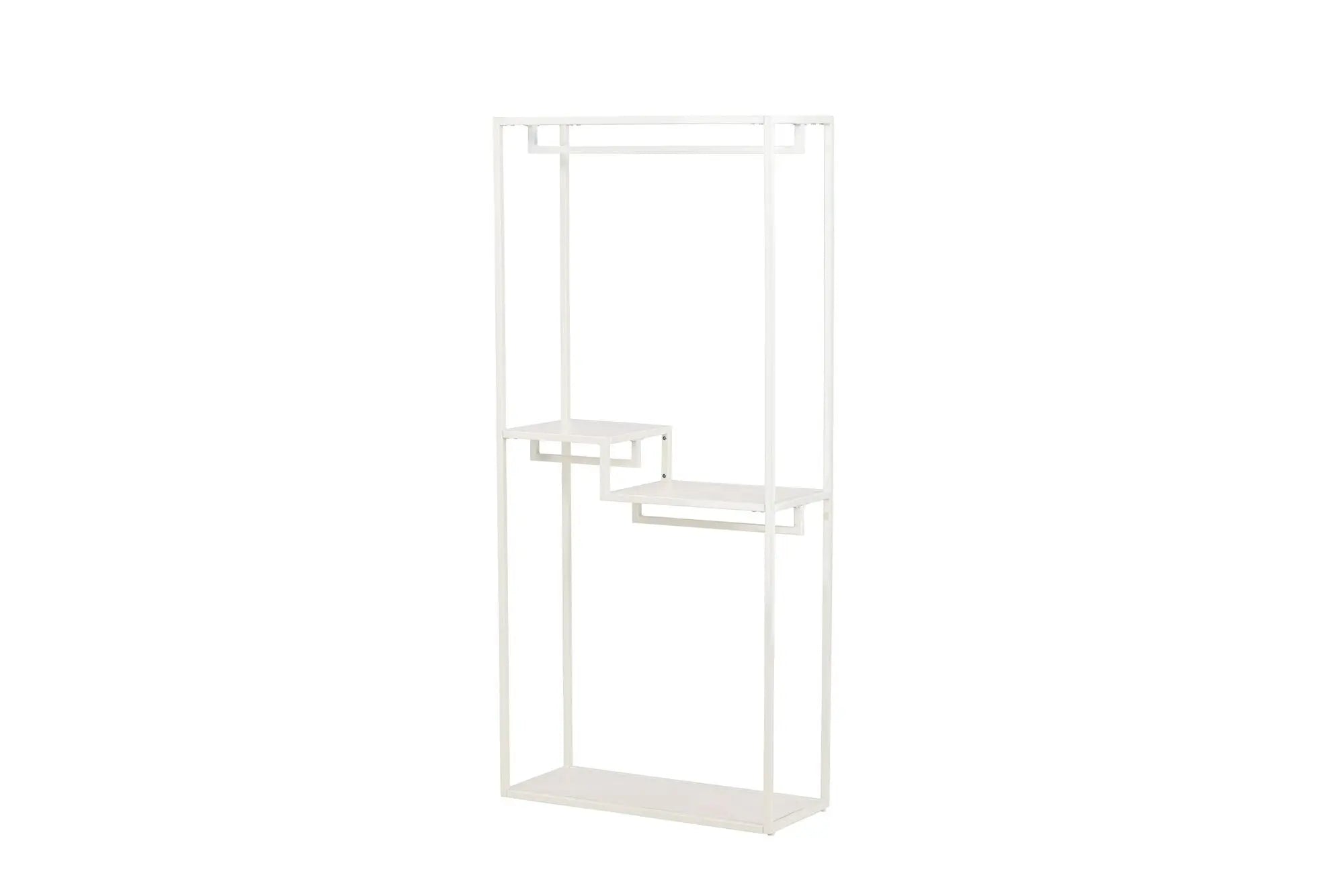 Ce qui rend Staal unique, ce sont ses étagères intelligentes. Deux petites étagères vous donnent la possibilité de ranger des bijoux, des vêtements pliés ou d'autres petits accessoires, tandis que la plus grande étagère offre de l'espace pour des objets plus gros ou peut-être un élément décoratif. Et comme si cela ne suffisait pas, Staal offre également de l'espace pour les cintres, ce qui en fait une solution complète pour vos besoins de rangement de vêtements.