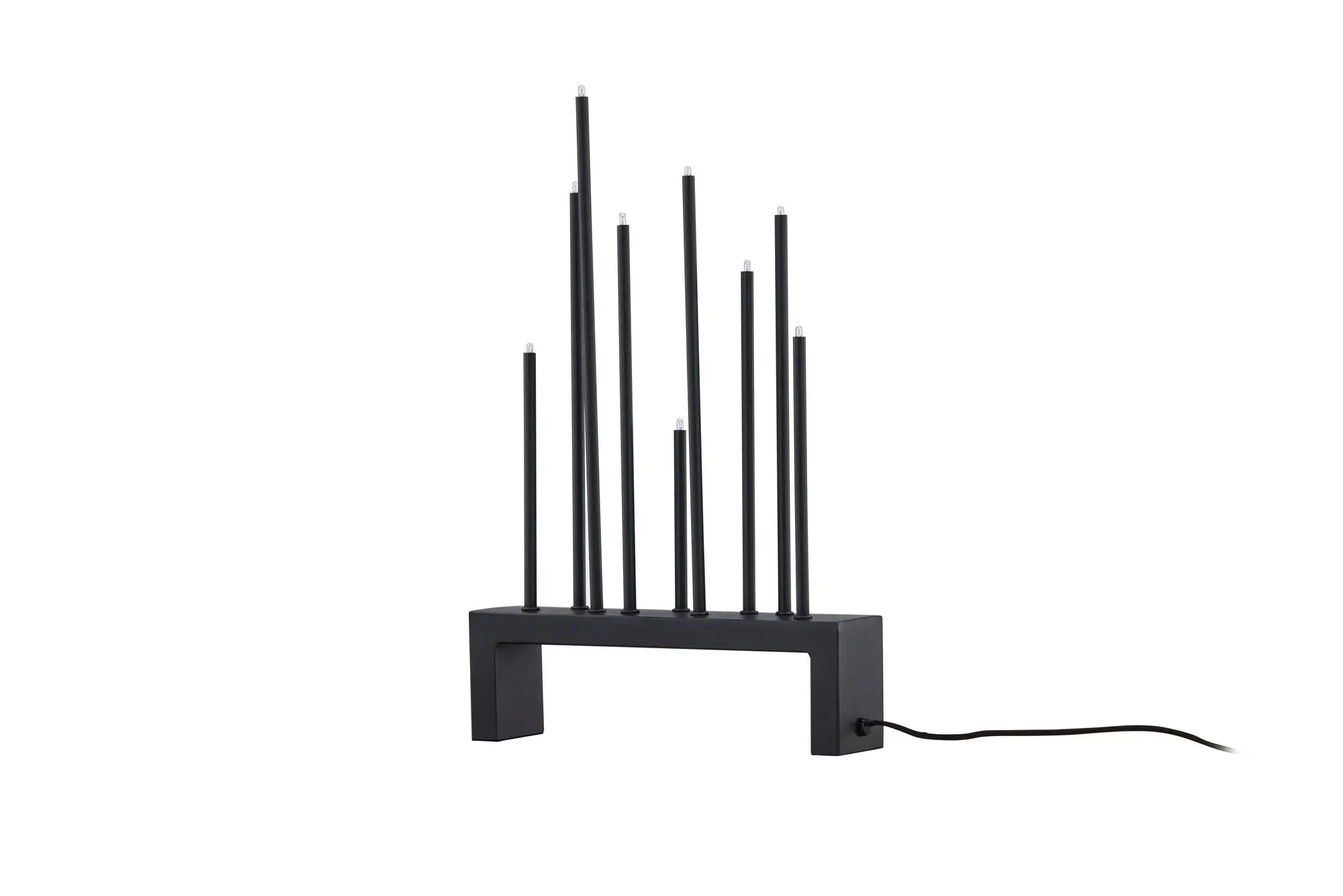 Chaque lampe, avec son design inspiré des chandeliers de l'Avent, apporte une touche de modernité. Les petites lumières à diverses hauteurs projettent une lueur douce, enrichissant votre décoration. Leur structure en acier noir souligne un style minimaliste et contemporain.