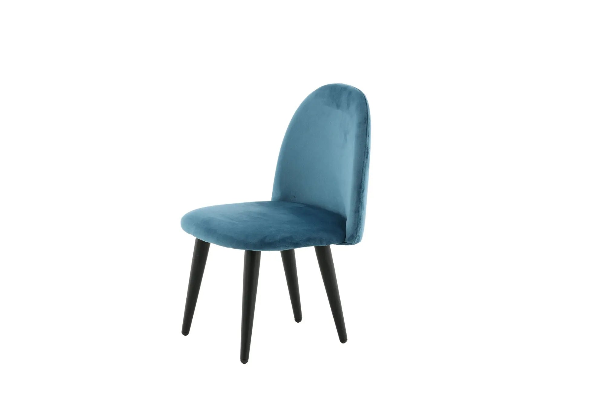 Avec leur revêtement en velours bleu et leurs pieds en métal thermolaqué noir, ces chaises apportent une touche de raffinement à votre intérieur. Leur design arrondi, tant au niveau du dossier que de l'assise, offre une assise des plus confortables.