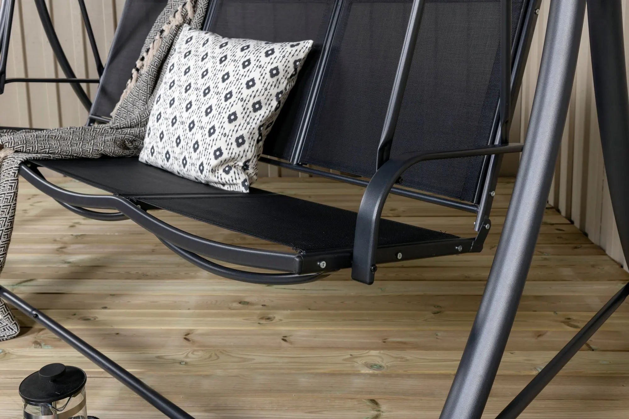 Ce balancelle spacieux accueille confortablement trois personnes, offrant un espace parfait pour partager des moments de détente. Son toit protecteur, conçu en PVC et polyester, vous garantit ombre et fraîcheur même sous le soleil ardent.