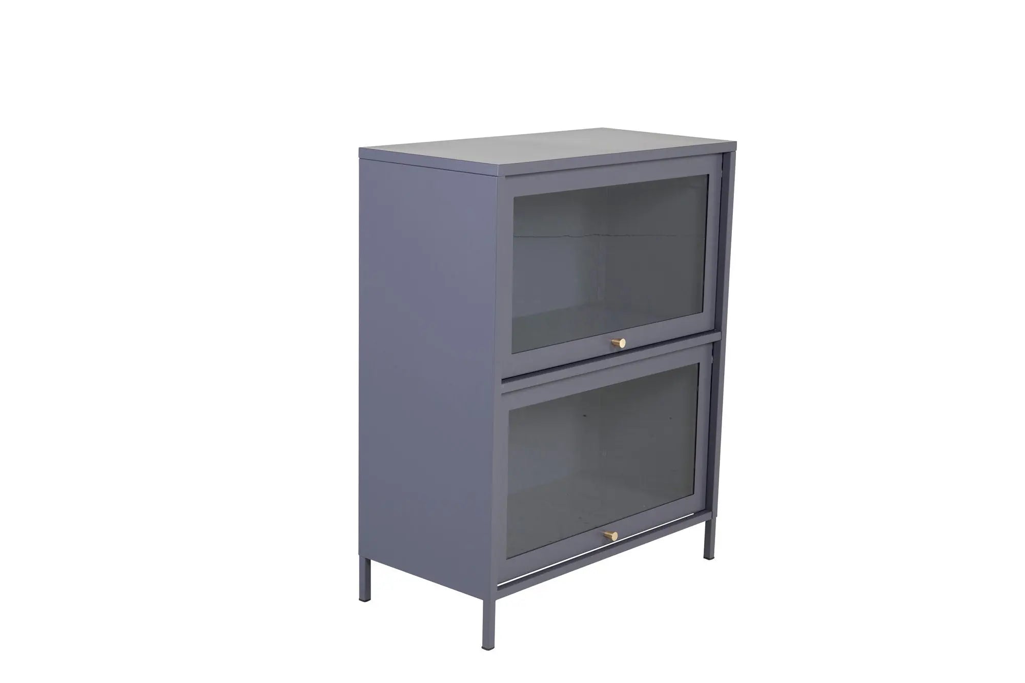 Ce buffet est caractérisé par sa structure en acier peint par poudrage, offrant durabilité et style. Les deux portes vitrées, s'ouvrant vers le haut, révèlent un espace de rangement généreux pour vos objets précieux. L'esthétique est rehaussée par des boutons en laiton raffinés et des pieds fins, assurant stabilité et élégance.