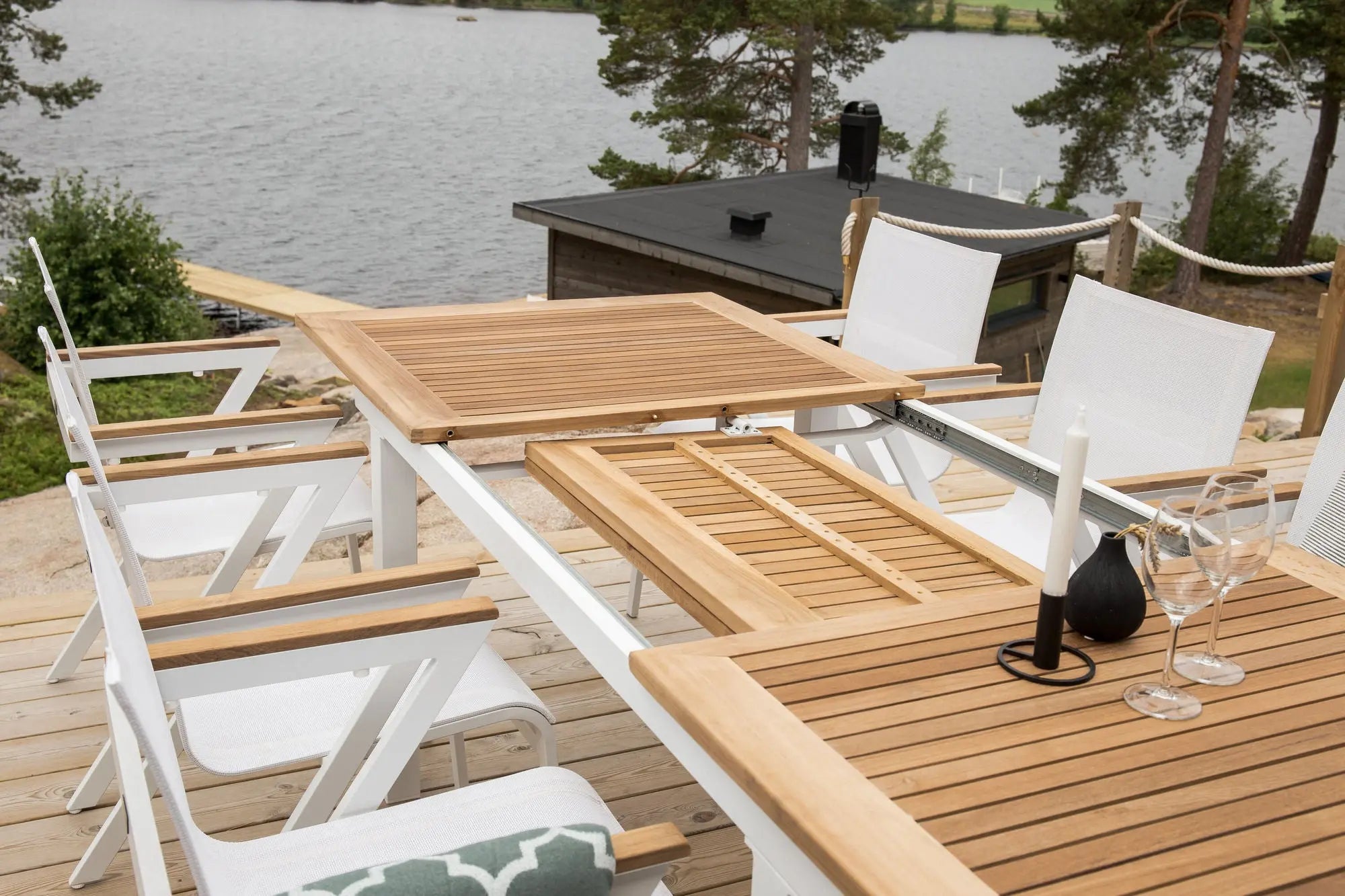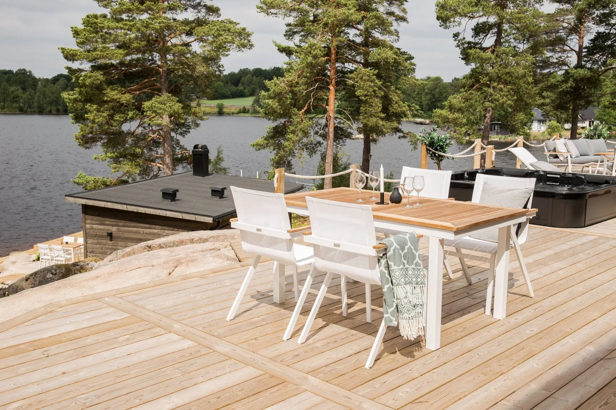 Dotées d'accoudoirs en teck, ces chaises apportent une touche raffinée à votre espace extérieur. L'assise blanche, facile à empiler, s'harmonise avec tout type de décoration, des plus modernes aux plus classiques.