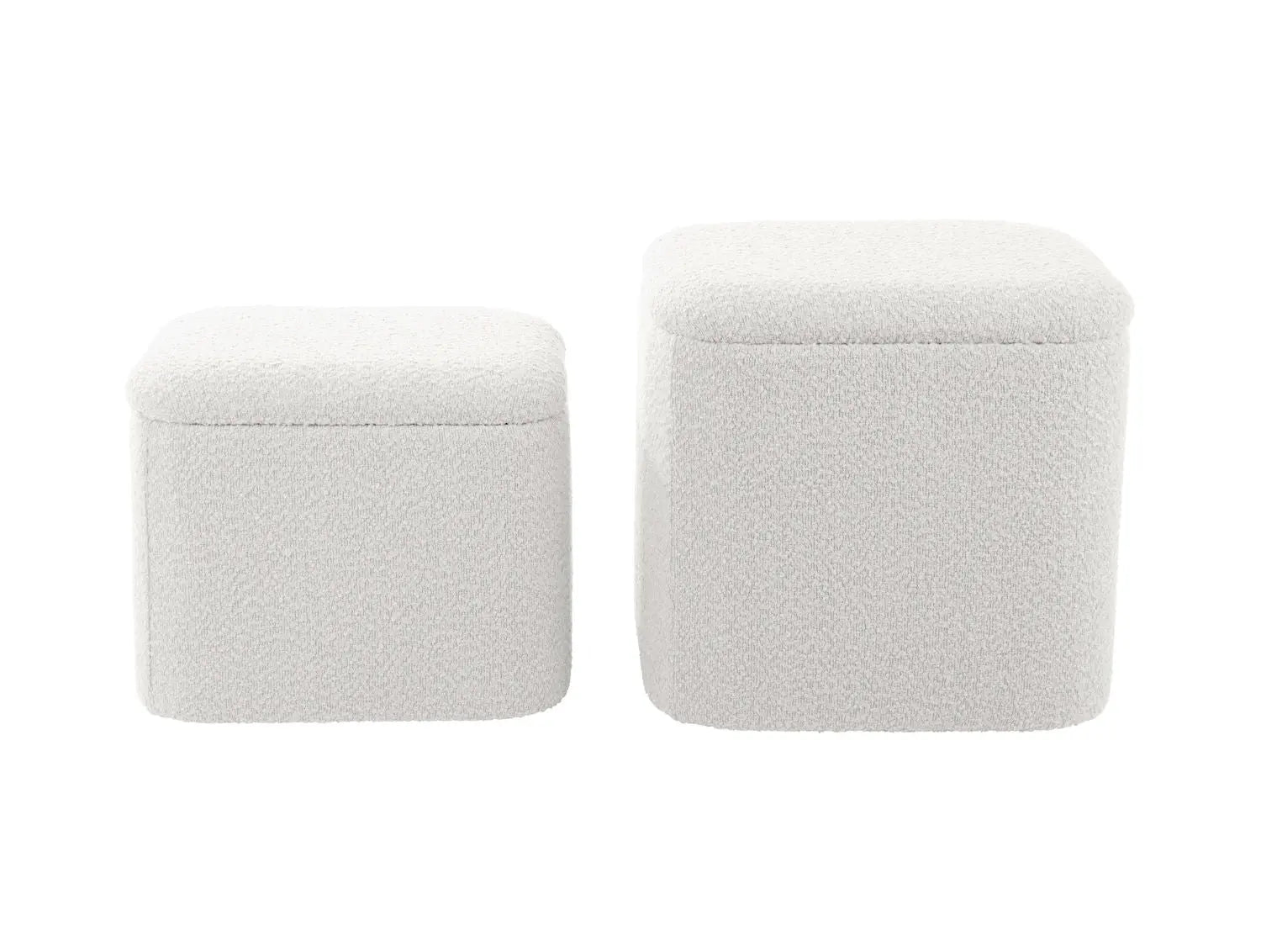 Ce duo élégant se distingue par son revêtement en tissu bouclé, tendance et doux au toucher. Parfait pour reposer vos pieds ou servir de table d'appoint, ces poufs polyvalents s'adaptent à vos besoins et à votre espace.