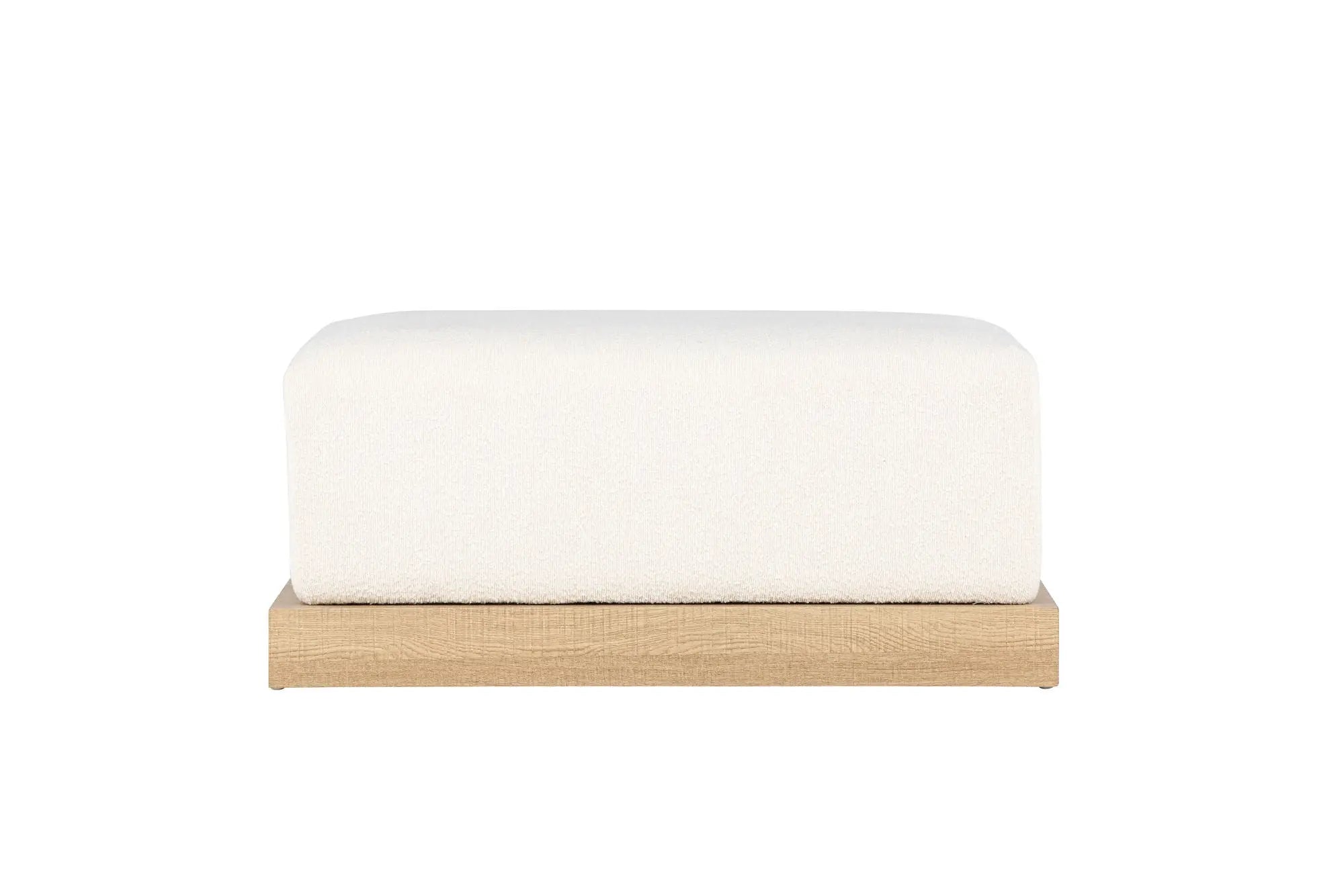 Parfait comme siège d'appoint ou repose-pieds, il allie fonctionnalité et style. Le blanc du tissu bouclé illumine la pièce, apportant fraîcheur et modernité.