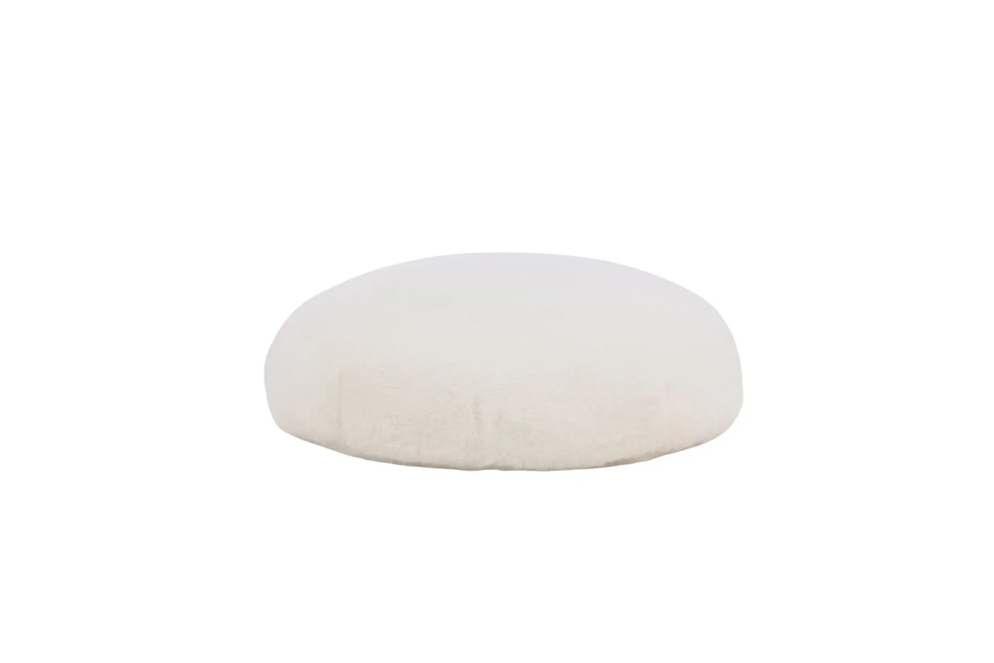 Ce siège moelleux se distingue par sa couverture en laine d'agneau blanche, offrant un réconfort exceptionnel. Son format compact et ses courbes arrondies apportent une touche de douceur à tout espace.