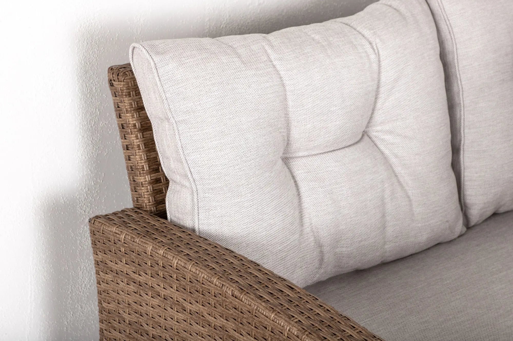 Les coussins inclus, de couleur sable, ajoutent une note de confort et d'esthétique. Faciles à entretenir, ces meubles sont conçus pour résister aux UV et aux variations climatiques, assurant ainsi une longévité remarquable.
